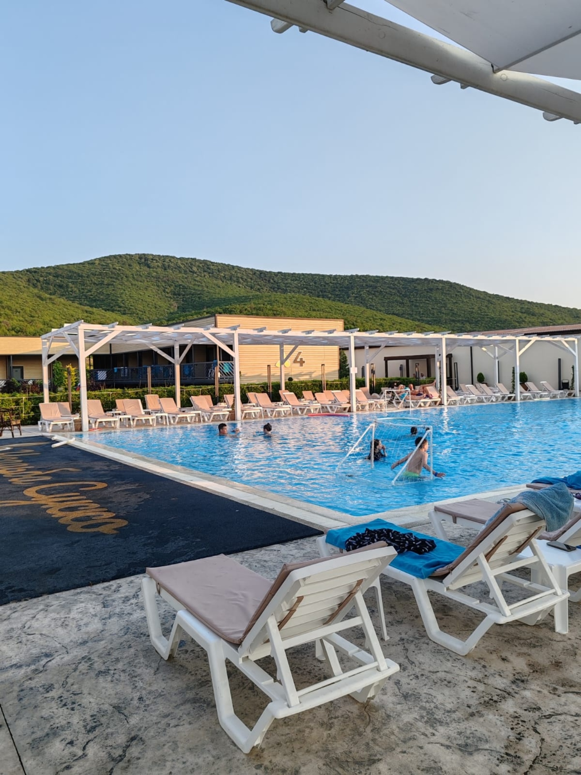 Отдыхали с 14.09-22.09, нас было 3 человека. Заселили в 4 корпус. Из минусов: не удобное кресло, на нем очень жестко спать, даже с топером и мы еще стелили одеяло. Все равно, больно спине и плюс оно очень узкое. Про кресло как доп. место много плохих отзывов. Огромная просьба сотрудникам отеля уделить этому внимание. Установите, пожалуйста, на окна москитные сетки… комарики…мелочь, а было бы очень приятно. В остальном, одни только плюсы. Побывали в сказке. Природа, воздух чистый. До моря 5-7 мин. по красивой дороге, ездишь и любуешься горами и морем. Море чистое, мы приезжали рано, лежаки всегда были. Лимонад, пиво в неограниченном кол-ве. Снеки разные, мы брали в основном фри и наггетсы с соусами. Бассейны чистые на территории отеля, хлоркой не пахнут. Два бара, везде приветливые сотрудники. Я не пью алкоголь, но мне делали разные безалкогольные коктейли, за это огромное спасибо барменам Данилу и Николаю. Номера убирали каждый день, полотенца если кидаешь на пол мокрое, когда приходят убираться обязательно заменят. Нам каждый день меняли. Еда в ресторане выше всяких похвал, разнообразная, голодным точно не останешься. И самое главное, нам ни разу не было плохо. Все свежее. Особо хотела выделить очень вкусную молочную продукцию. Брали каждый вечер кефир, кто любит обязательно попробуйте 😊 Рекомендую!